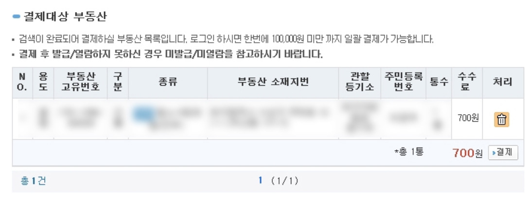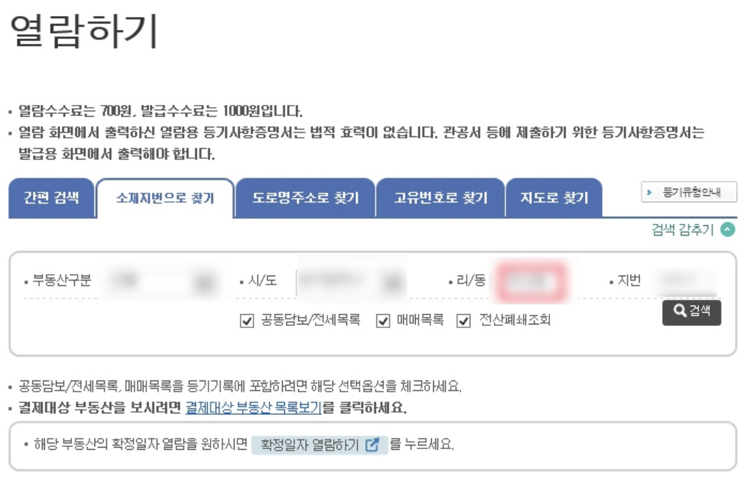 부동산 등기부 등본을 온라인에서 발급 또는 열람하실 경우, 발급에 경우 1,000원의 비용이 열람의 경우, 700원이라는 비용이 발생하게 됩니다.